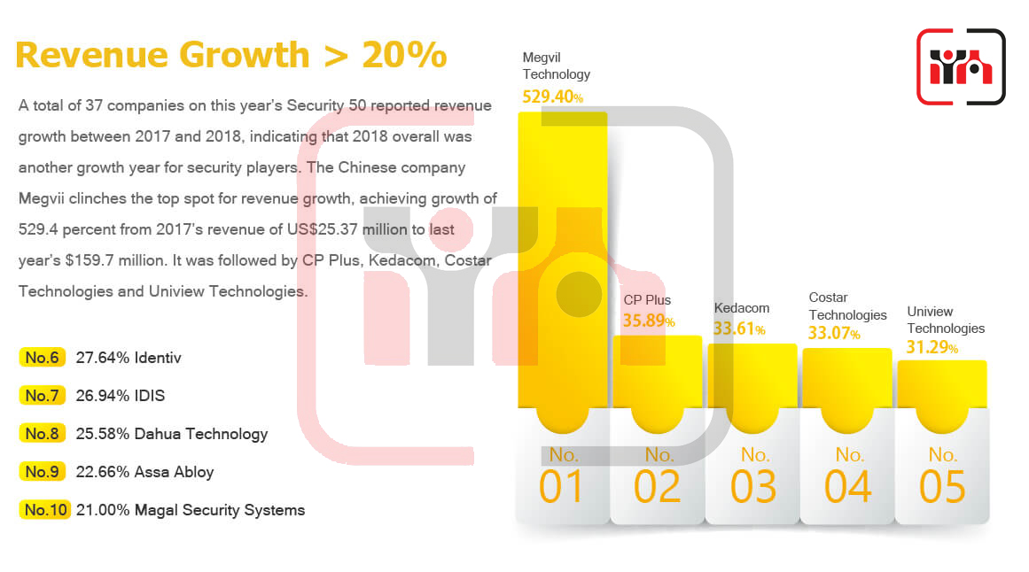 Security 50 Ranking reviews the sales revenue of the 50 most influential international companies in physical security sector. This is an unbiased industry ranking to provide global professionals a sneak peak of the current security industry.