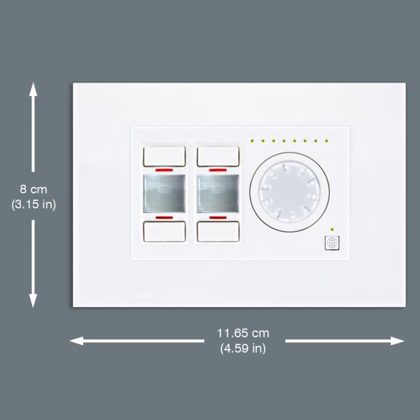 Combines 4 buttons and 1 rotary dial to control/dim any output (lights, sprinklers, etc.) or macro (group of outputs)
